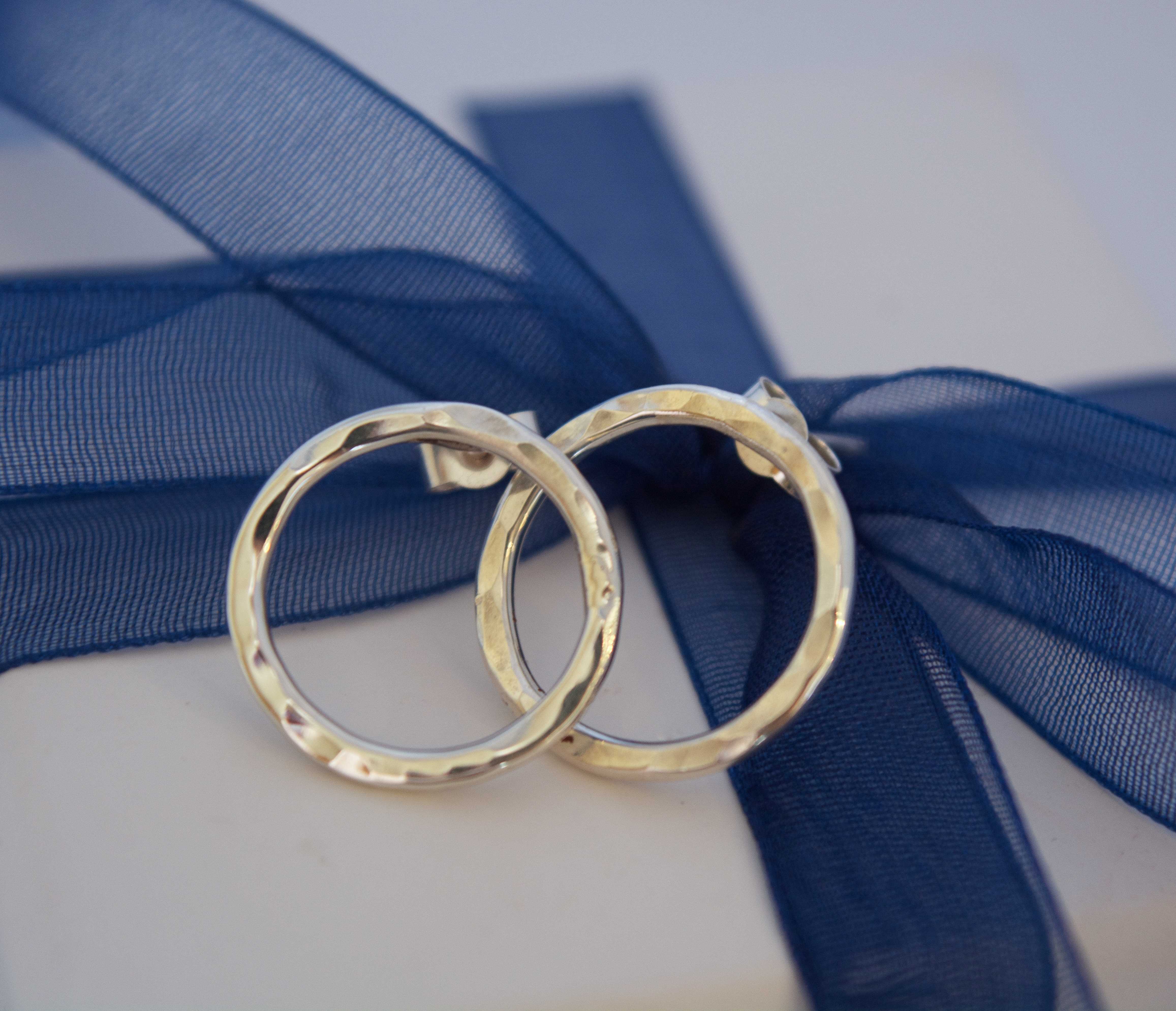During our jewellery making session, we will be making 2 pairs of earrings, one stud pair and one drop pair, both of the same style. We will be using sterling silver wire to make a circle and will be texturing it with a range of hammers, you will be able to practise on copper. We will learn to solder in order to close the circle and attach the post for a stud earring and we will make the earwires ourselves using thin silver wire. Your earrings will be polished whilst you relax and chat all things creative with your fellow makers!