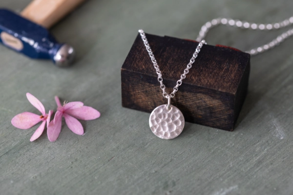 In this 2.5-hour evening workshop you’ll design and make your own sterling silver pendant. You’ll have the chance to experiment with shape and texture using hammers and other jeweller’s tools before moving on to your final piece in silver. Your pendant will be soldered, polished and ready to wear by the end of the evening.